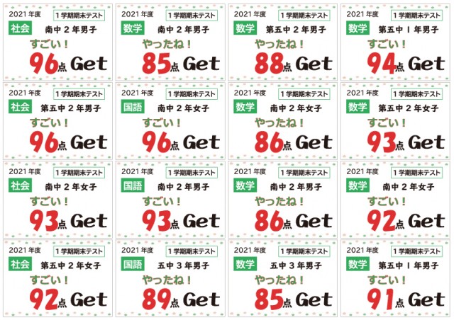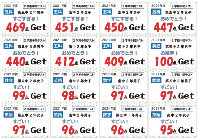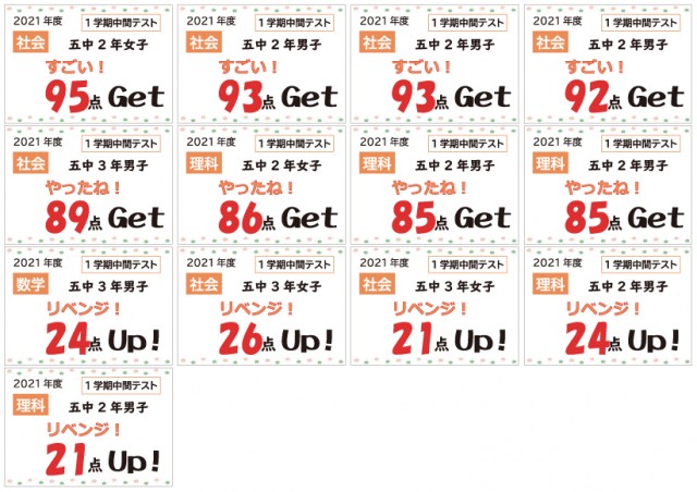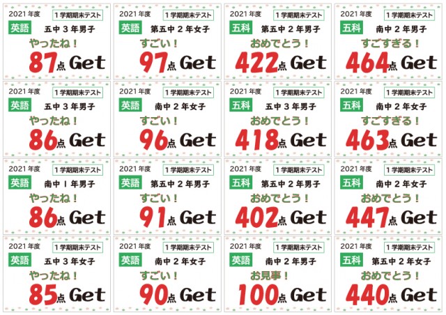 府中第五中生 1学期中間考査 5教科自己ベスト更新100%達成!