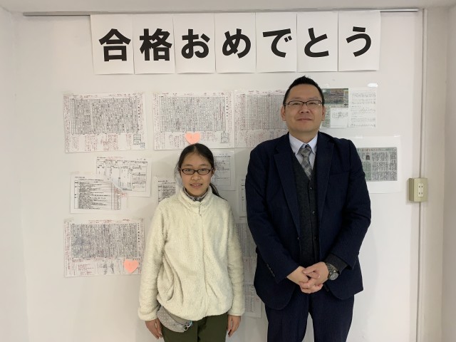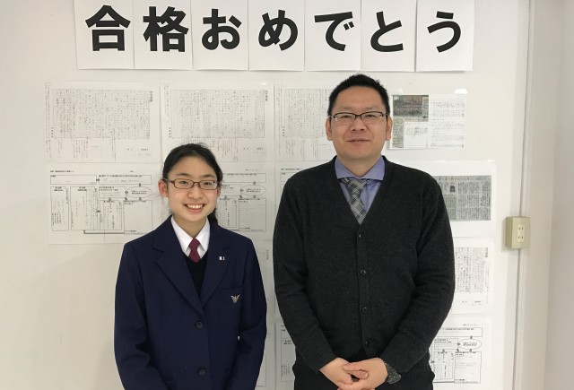 小山台高校合格生徒(佐藤里映さん)と教室長