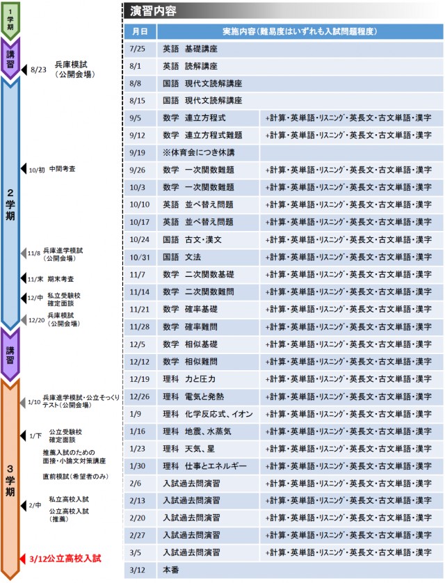 主に中3生を対象に、公立高校入試問題演習に特化した特訓講座を実施しています。