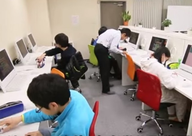 当教室では、生徒は問題を解き、解答をパソコンに入力し、パソコンが採点を行います。