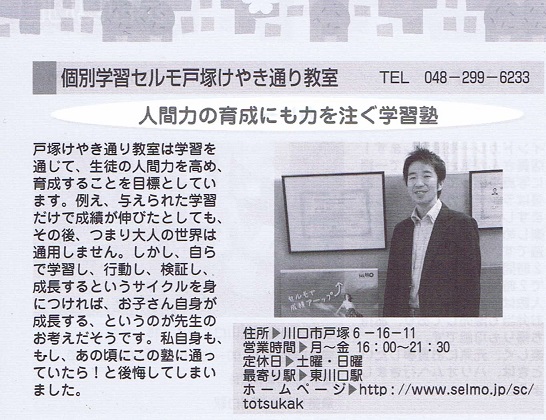学習塾では異例ですが、地域の元気なお店紹介で紹介されました。