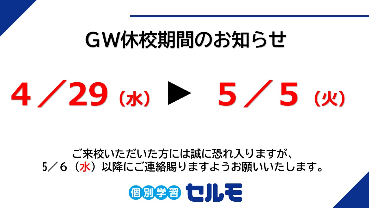 小さな塾なので大勢はお受けできませんが(2,3名を予定)、「GW特別講習」についてはお早目にお問合せください。