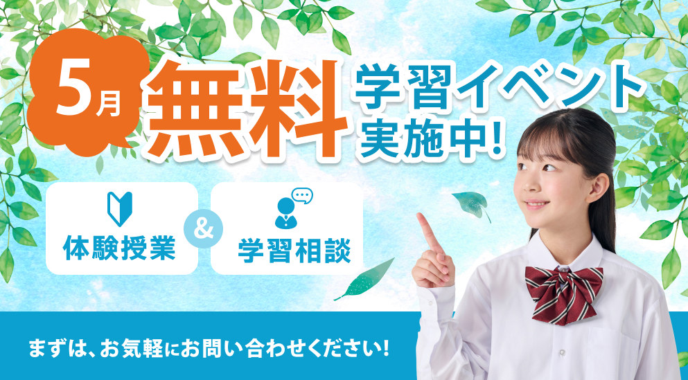 また、今から「塾」をお探しの方向けに「GW特別講習」を実施予定です。学年の最初の「ちょっとしたつまずきのリカバリー」をGW期間中に実施し、中学生は6月3日に実施される「第一回校内学力調査」対策を、小学生は「単元ごとの確認テスト」対策をとってまいります。