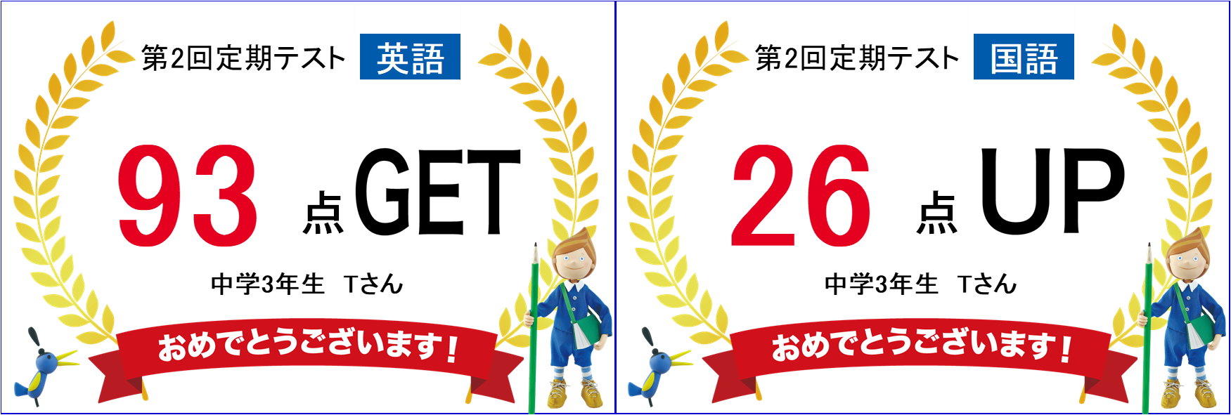 テスト2~3週間前から定期テスト目標チャレンジ特訓を行い、テストの最終確認を行っていきます。教科書準拠の教材を活用し、テスト範囲に合わせて徹底的な反復演習をすることで、自信を持ってテストに臨むことができます。