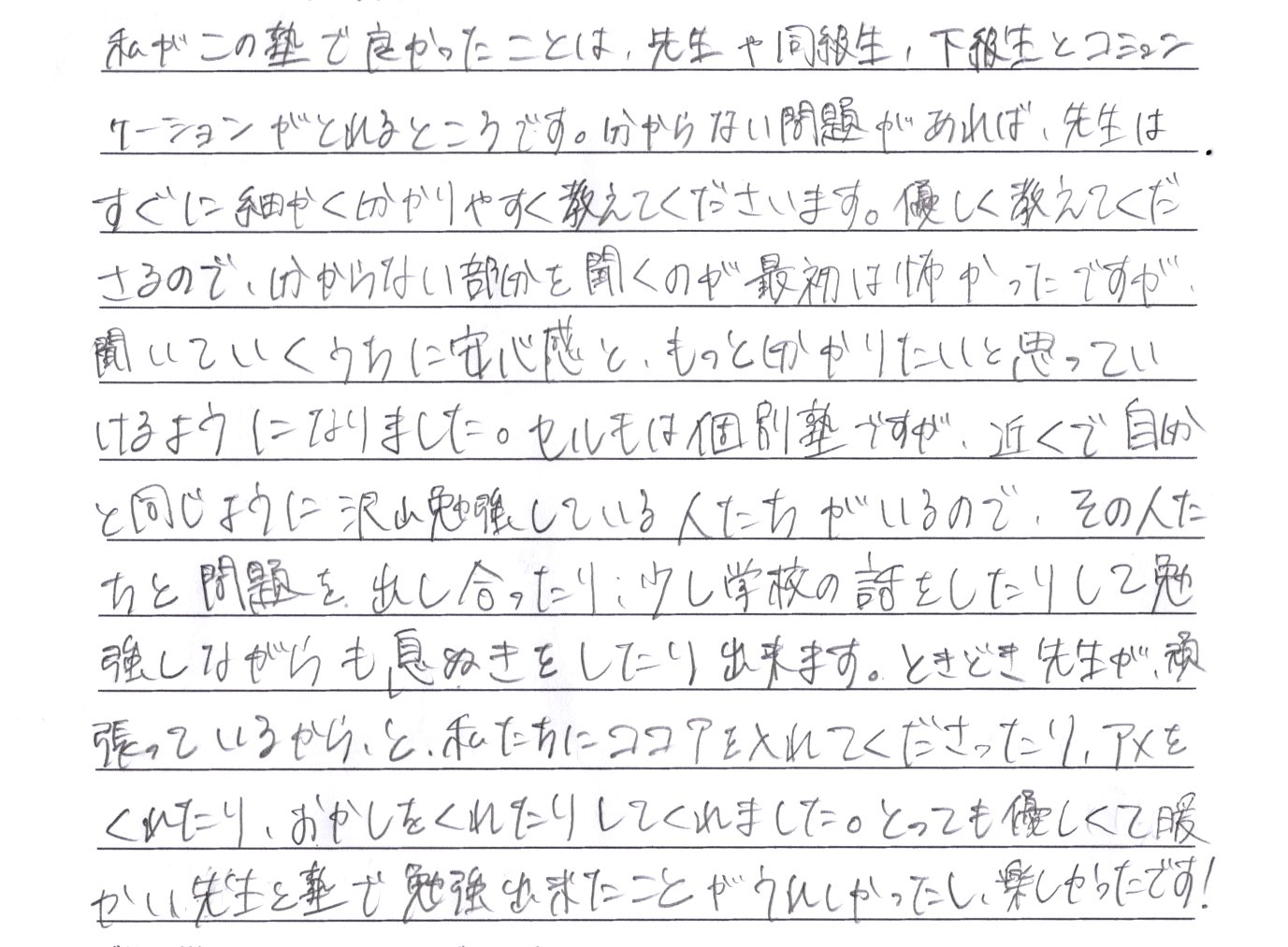 A:・よく話しかけてくれて、私の苦手分野を把握して対策を考えてくれています。