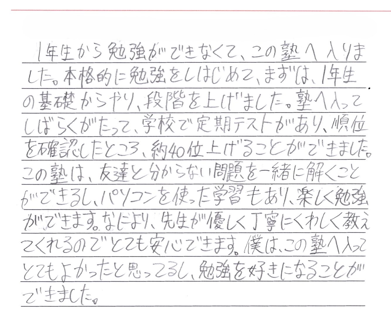 (小学4年生の生徒さんと保護者様の声)