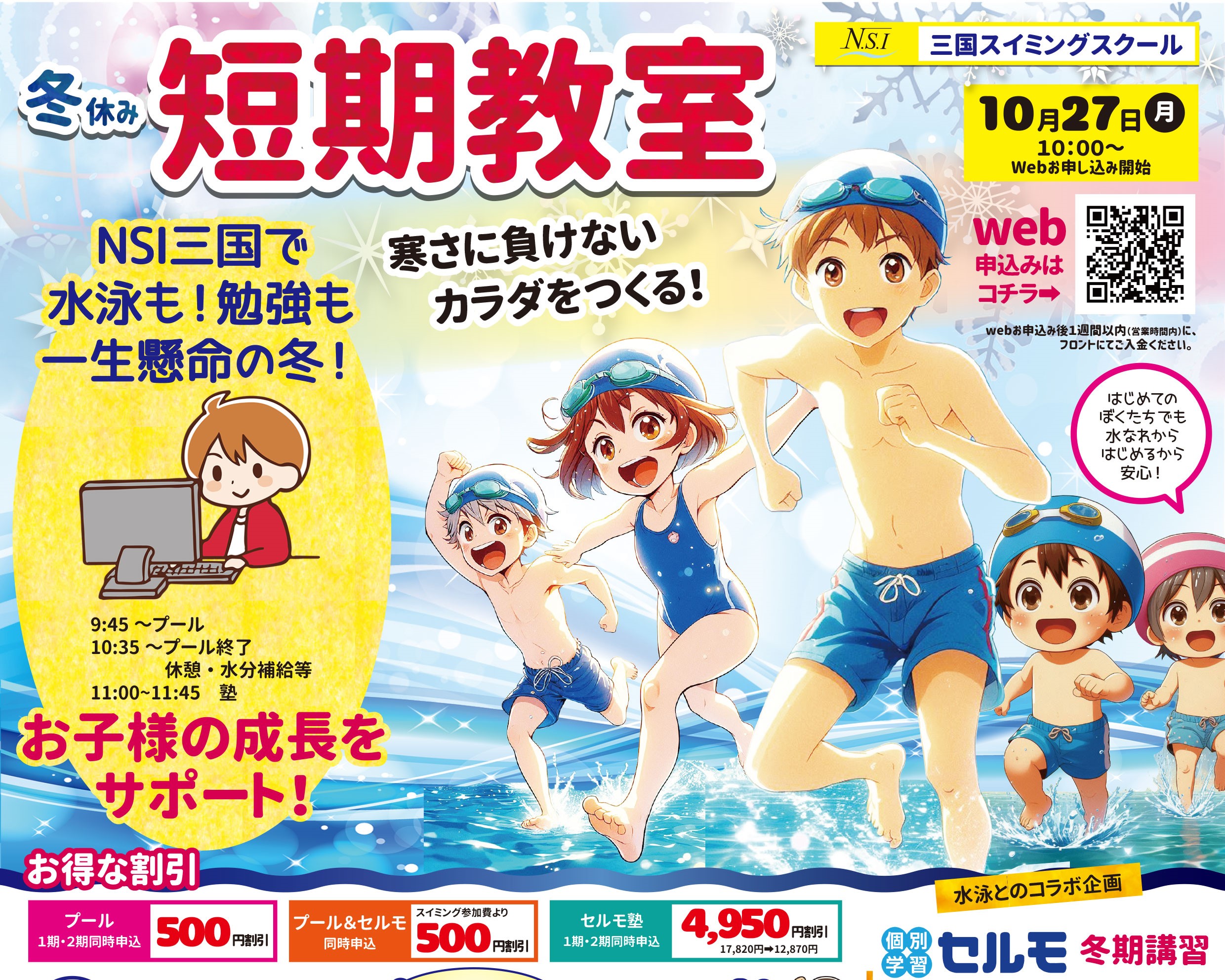 「冬のスイミング短期教室」と一緒に「個別学習セルモの冬期講習」にも参加してみてはいかがでしょうか。