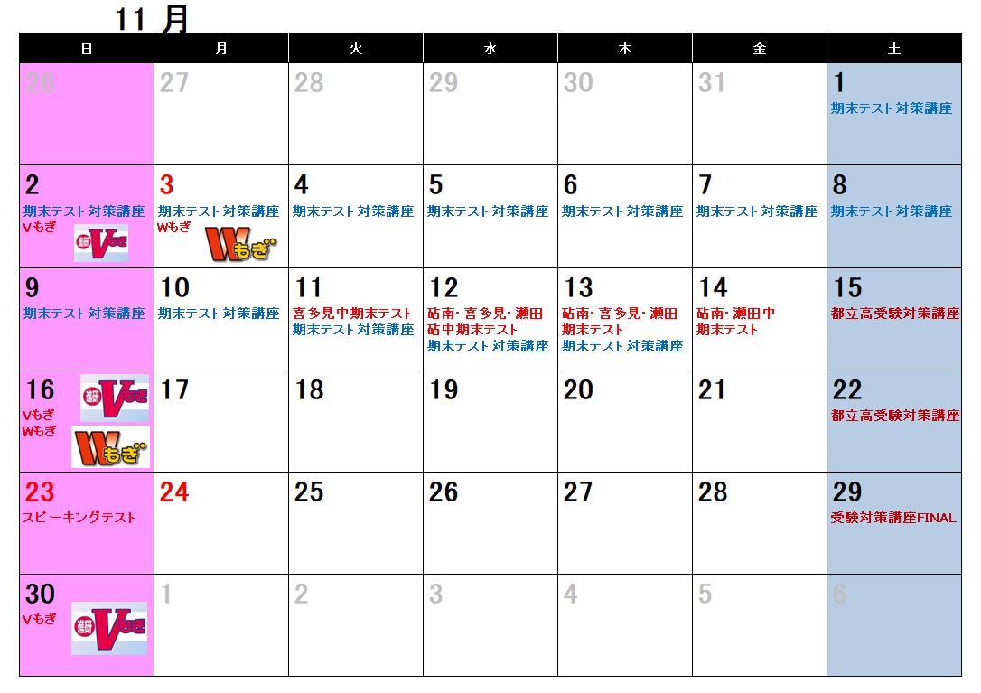 ◎定期テスト対策講座実施しました。(9/29-10/9 11/10-11/20)