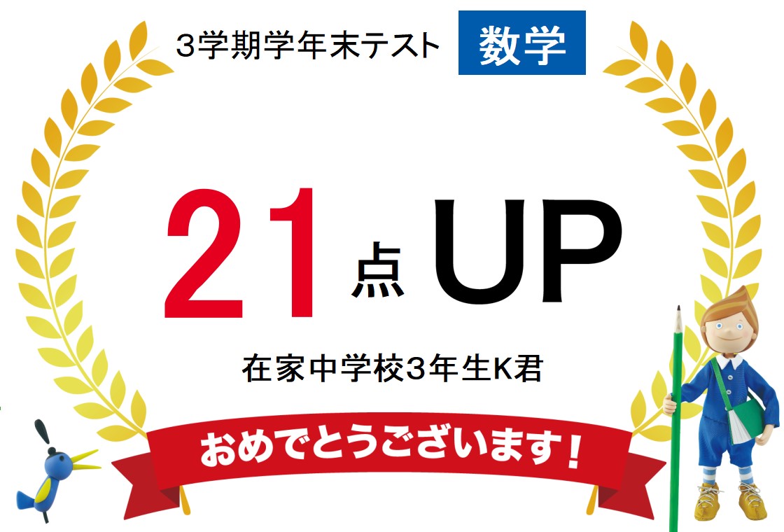 【英語】20点以上UP 2名 【数学】60点以上UP 20点以上UP 2名